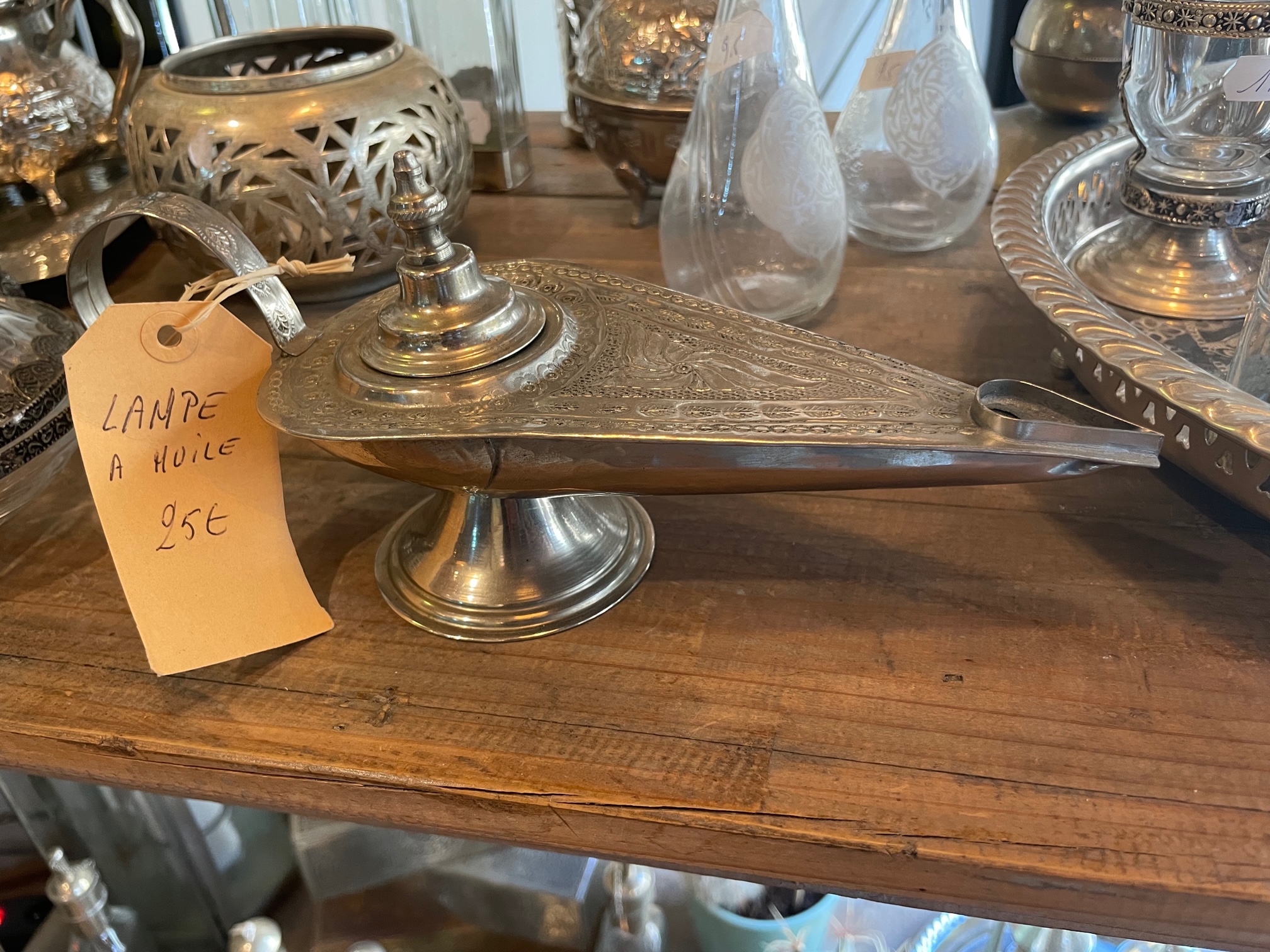 jolie lampe à huile en métal